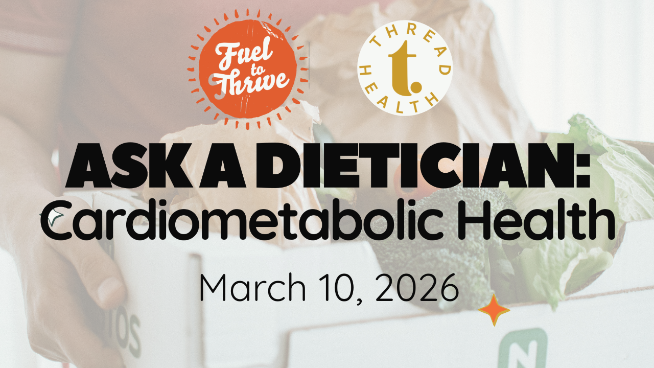 This session dives into the fascinating connection between nutrition, the microbiome, digestion, and overall health. A local Fuel to Thrive dietician will explain what actually supports a healthy gut, how to use food to reduce bloating and inflammation, and how gut health influences immunity, mood, and metabolic well-being. You’ll leave with simple, sustainable strategies to nourish your gut and feel better from the inside out.